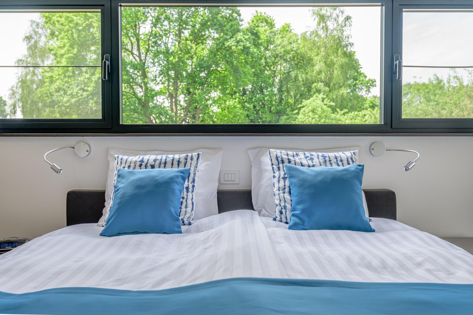 De kamer heeft uitzicht op de tuin. Naast het tweepersoonsbed kan er een babybedje (of een extra bed voor de iets grotere kinderen) bijgezet worden.